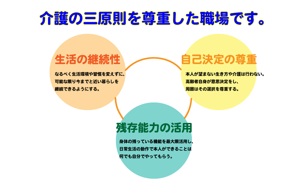 「~あなたらしい生活をあなたらしいリズムで~」を目指して、ご利用者様の今までの生活習慣を尊重したケアをしてまいります。